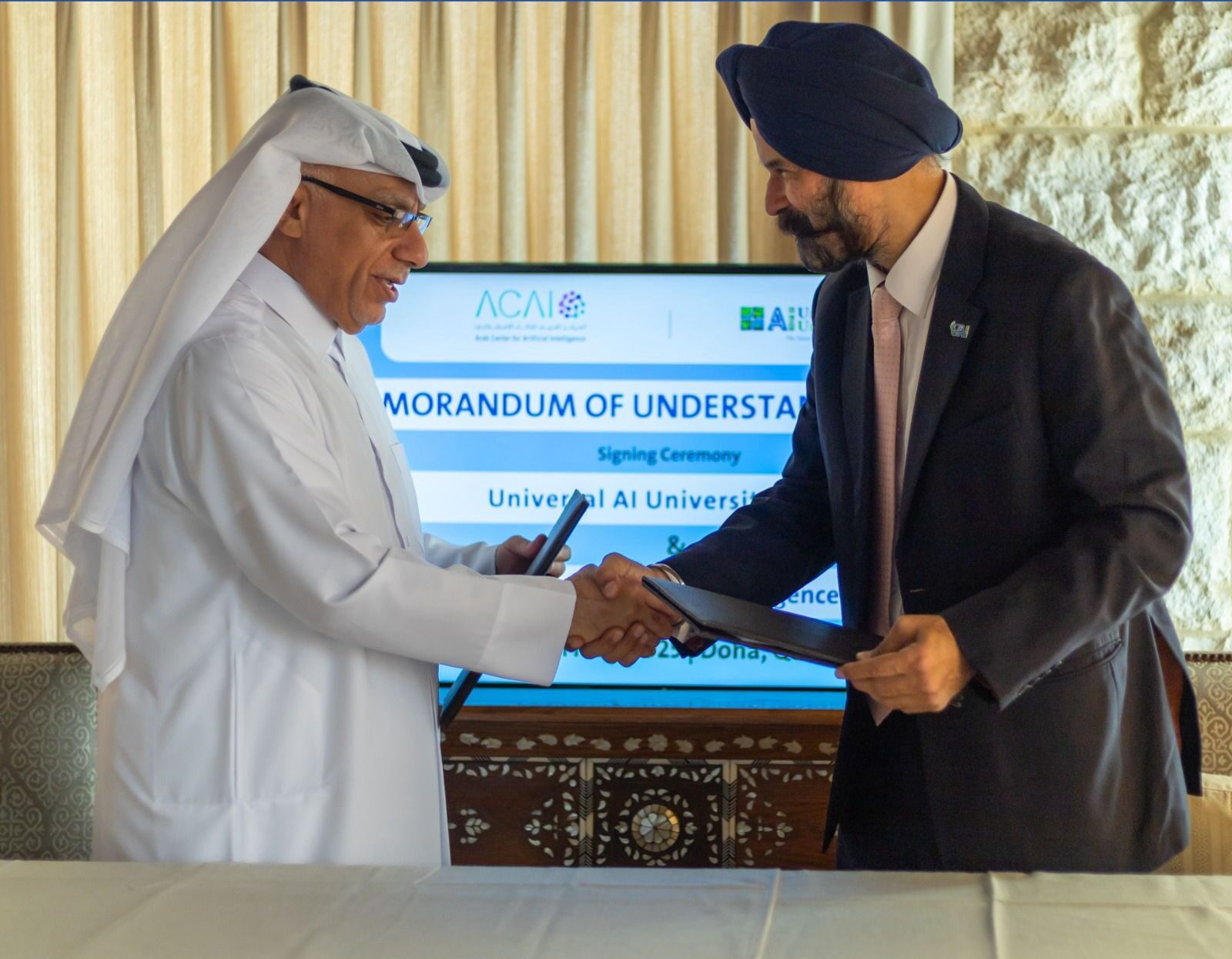 قام المركز العربي للذكاء الاصطناعي (ACAI) في قطر، بتوقيع مذكرة تفاهم مع جامعة يونيفرسال للذكاء الاصطناعي (UAI)، المؤسسة الهندية الرائدة في التعليم العالي المتخصص بالذكاء الاصطناعي والتقنيات الناشئة. وذلك في خطوة استراتيجية تهدف إلى تسريع وتيرة التقدم في مجال الذكاء الاصطناعي بقطر والمنطقة، وتعزيز التعليم والبحث والابتكار في هذا المجال المتنامي الاستخدامات.