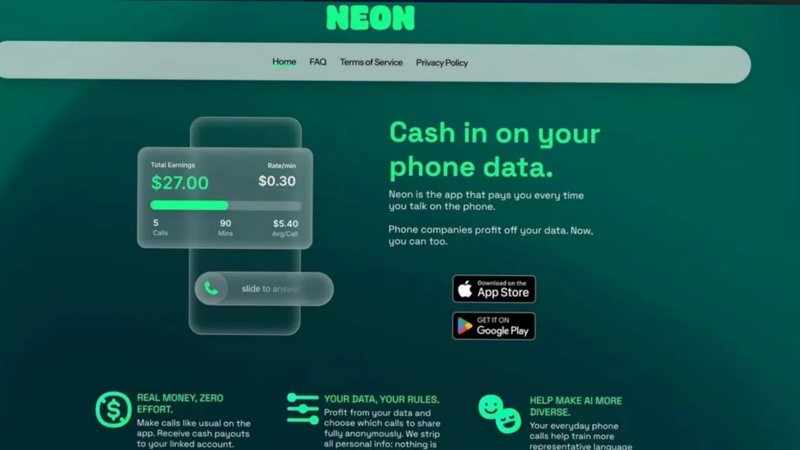 ووفقًا لشروط الخدمة، يقوم التطبيق بتسجيل المكالمات الواردة والصادرة، مع التأكيد على أنه يحتفظ فقط بصوت المستخدم في حال لم يكن الطرف الآخر مشتركًا في “نيون”.