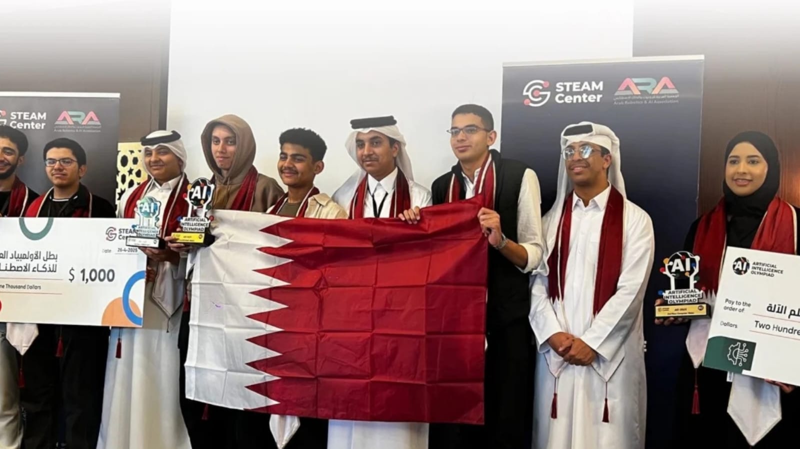 أحرزت دولة قطر لقب “بطل العرب” إلى جانب ثلاث جوائز مرموقة خلال مشاركتها في النسخة الرابعة من مسابقة الأولمبياد العربي للذكاء الاصطناعي، التي أُقيمت في الأردن بمشاركة أكثر من 300 طالب يمثلون 200 فريق من مختلف الدول العربية، بتنظيم مشترك من مركز STEAM والجمعية العربية للروبوت والذكاء الاصطناعي.